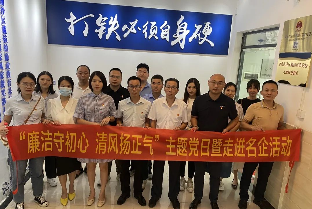 为进一步深入学习贯彻党的二十大精神,强化党员纪律规矩意识,增强拒腐防变、廉洁自律的思想自觉和行动自觉,2023年8月31日下午,广东省科技成果转化促进会(以下简称粤科促会)、中共粤科促会支部、中共广州市南沙区企业和企业家联合会支部委员会、中共广州市科技成果转化促进会支部共同开展“廉洁守初心 清风扬正气”主题党日暨走进名企活动。中共粤科促会支部书记郑东,中共广州市科技成果转化促进会支部书记、秘书长陶欢以及南沙企联“红色联盟”党建共建单位党员、会员企业代表近20人参加本次活动。